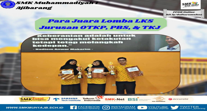 Pelaksanaan Lomba Kompetensi Siswa Tingkat Kabupaten Banyumas berlangsung dari tanggal 7 s.d 9 Maret 2023. Sementara itu Berikut ini hasil yang diraih oleh perwakilan SMK Muhamamdiyah 1 Ajibarang dalam kegiatan LKS Tingkat Kabupaten Banyumas :