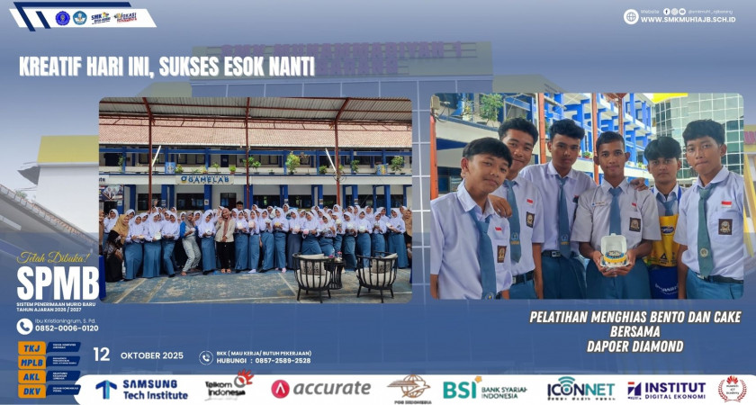Ajibarang – Suasana hangat dan penuh semangat terasa di ruang praktik Akuntansi dan Keuangan Lembaga (AKL) SMK Muhammadiyah 1 Ajibarang pada Selasa, 11 November 2025. Seluruh siswa kelas X jurusan AKL mengikuti pelatihan menghias bento cake yang dipandu langsung oleh Siska Amelia, owner Dapoer Diamond yang dikenal dengan kreasi cake-nya yang estetik dan menggugah selera.