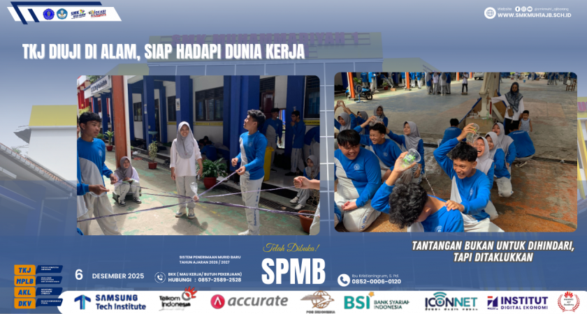 Sabtu, 6 Desember 2025, siswa kelas XI TKJ mengikuti kegiatan Outbond sebagai bagian dari pembelajaran di luar kelas yang dirancang untuk menyiapkan siswa menghadapi dunia kerja dan PKL. Kegiatan ini menitikberatkan pada penguatan mental, kedisiplinan, kerja sama, serta keterampilan teknis yang dibutuhkan di lapangan.