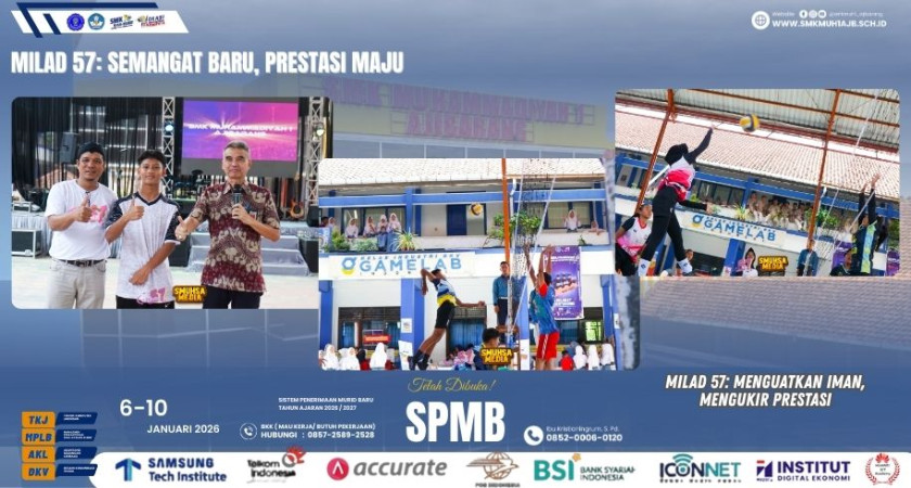 Ajibarang, Januari 2026 — Rangkaian perayaan Milad ke-57 SMK Muhammadiyah 1 Ajibarang resmi digelar mulai 5 Januari hingga 10 Januari 2026 dengan penuh semangat kebersamaan, kepedulian, dan inovasi. Mengusung semangat berbagi dan berprestasi, kegiatan tahun ini semakin lengkap dan bermakna.